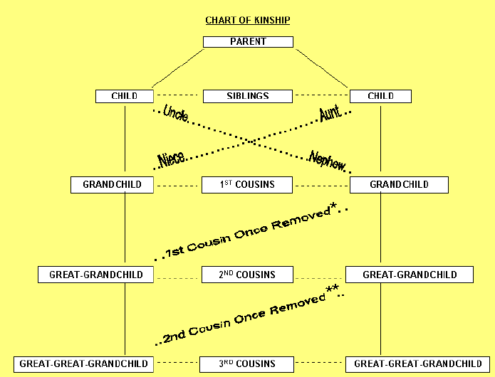 *A 1st cousin once removed is the child of a 1st cousin or the 1st cousin of one’s parent.