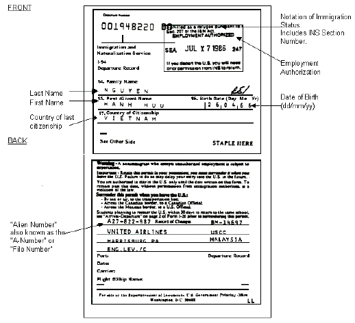 • This form is issued to visitors to the U.S. and will show the date of issue and date by which the visitor must depart.
