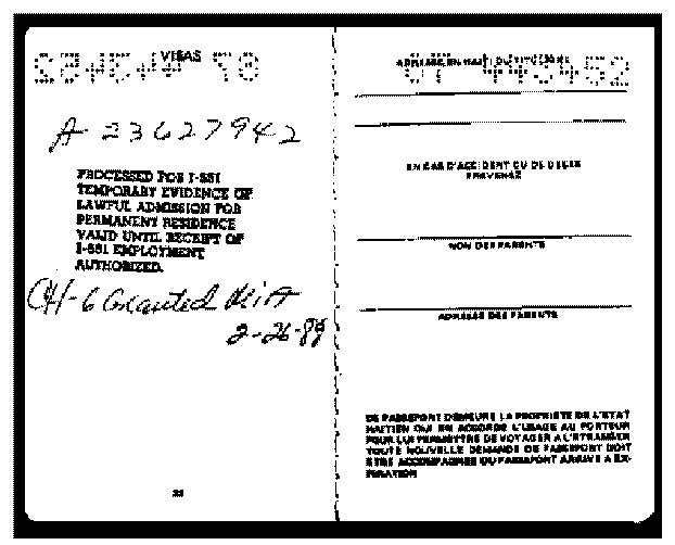 THIS IS A PASSPORT WHICH HAS BEEN STAMPED INSIDE BY INS