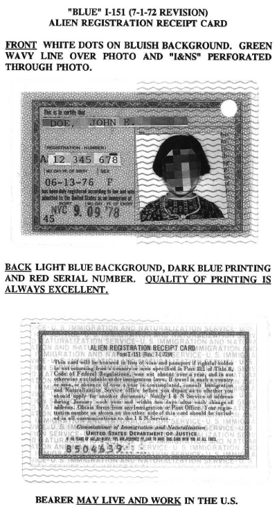 • This form replaced older issues of the I-151. The photo is part of the form and has no raised edges.